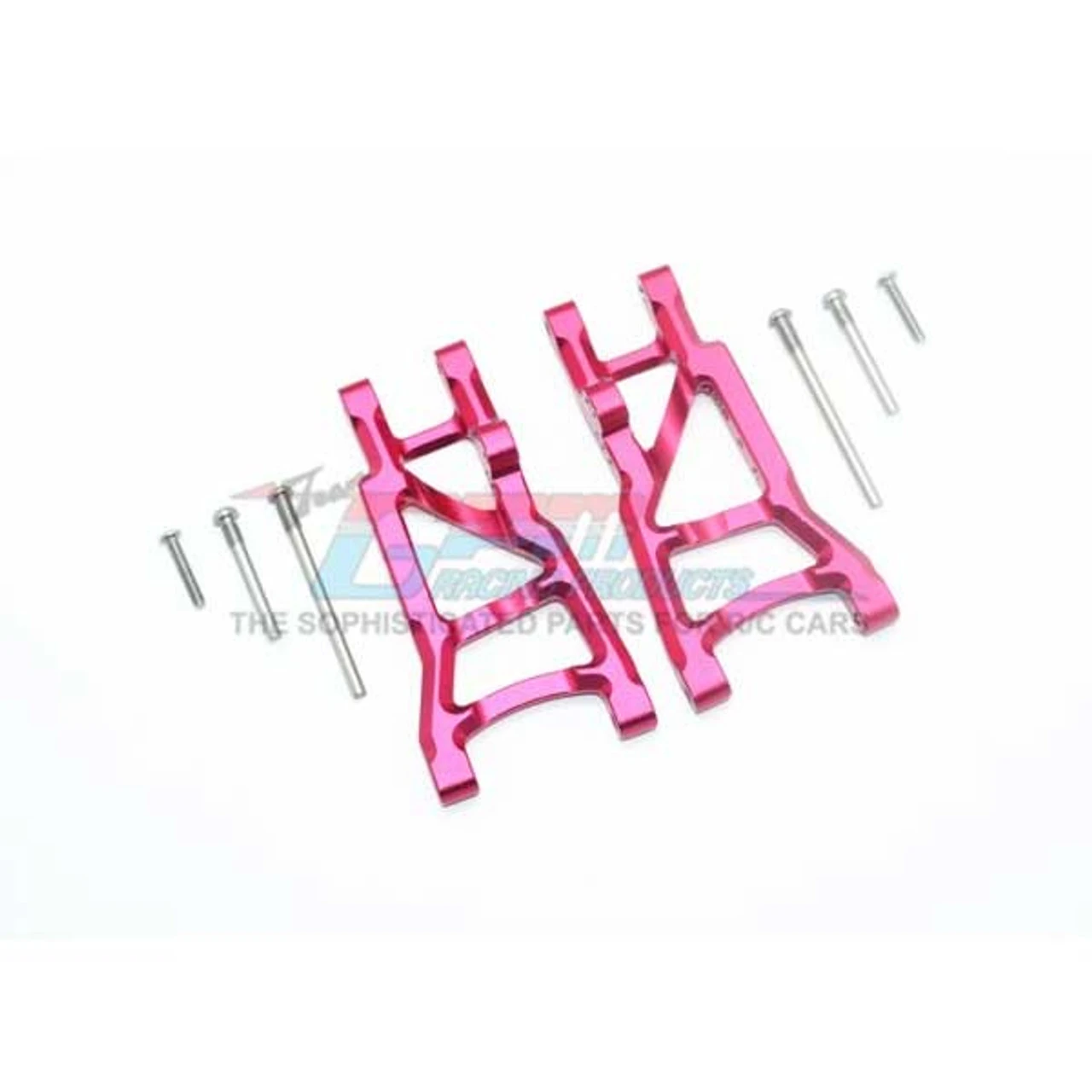 These are the GPM Racing Red Aluminum Rear Suspension Arms for Traxxas 2WD Slash electric trucks, Nitro Rustler, Nitro Slash, and Nitro Stampede. Made from 6061-T6 aluminum with an anodized finish, these look fantastic and improve durability over stock. Mounting hardware is included.