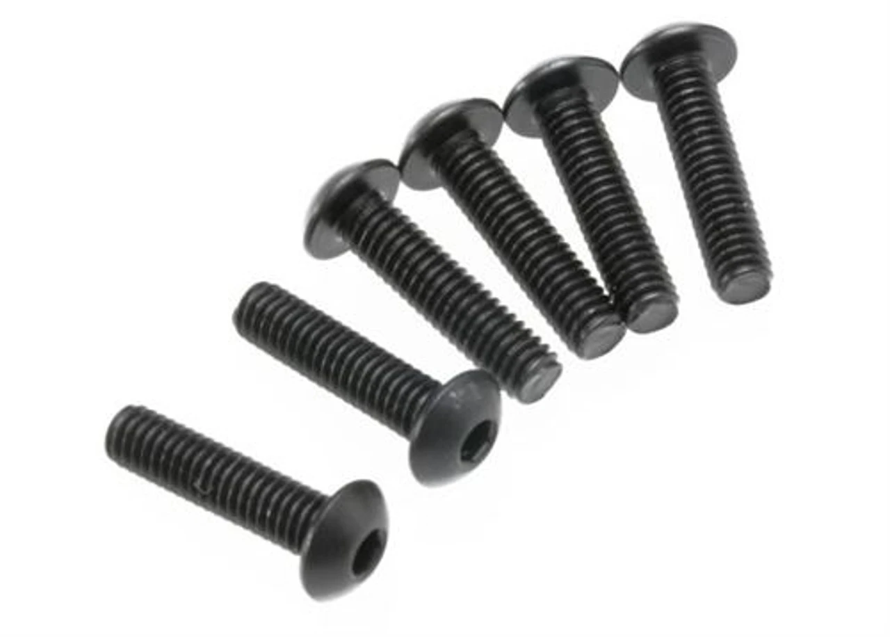 This is a package of six Traxxas 4x16mm Button-Head Hex Machine Screws.