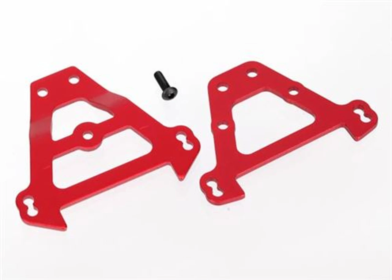 This is a pair of Traxxas Red Aluminum Front and Rear Bulkhead Tie Bars for use on 1/10 E-Revo, Summit, Revo 3.3, and Slayer trucks.